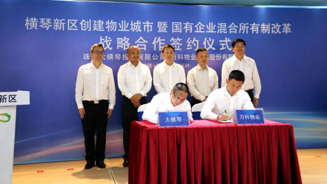 5月24日,珠海大横琴投资有限公司与万科物业发展股份有限公司正式签署战略合作框架协议,双方将携手推动“物业城市”管理理念的落地,同时将以珠海大横琴城市公共资源经营管理有限公司(简称大横琴城资)为合作载体进行混合所有制改革(简称混改),这标志着横琴新区深化国有企业改革、创建全国“物业城市”试点工作正式启动。