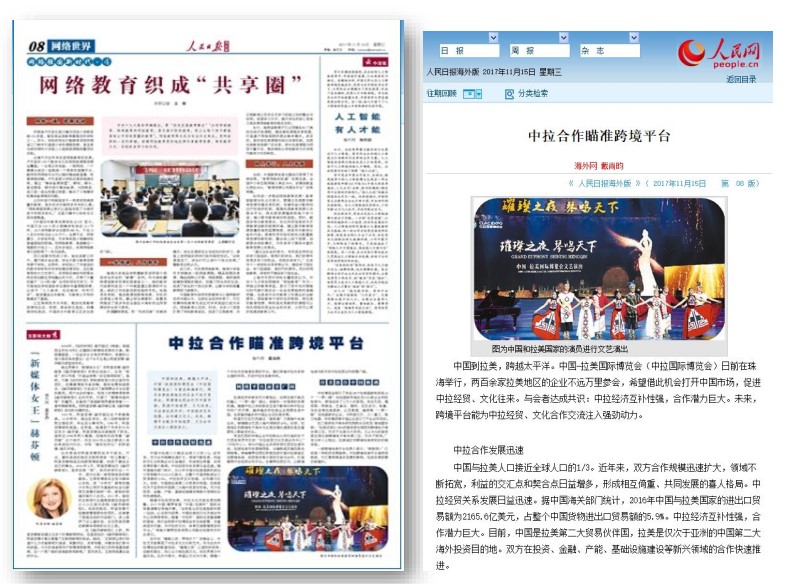 中拉博览会吸引了来自24个拉美国家和其他33个“一带一路”沿线国家和地区的523家企业和机构参与,展馆迎来了5万人次参观。来自巴西、墨西哥、阿根廷、巴拿马、智利、厄瓜多尔、秘鲁、乌拉圭等拉美国家,以及泰国、越南等“一带一路”沿线国家的企业,与阿里巴巴、三一重工、格力电器、华发集团等中国企业签订了产业合作项目。
